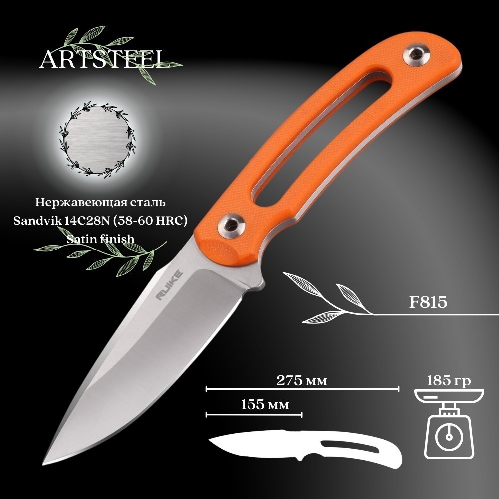 Туристический нож Ruike, сталь Sandvik 14C28N, рукоять G10 F815-J
