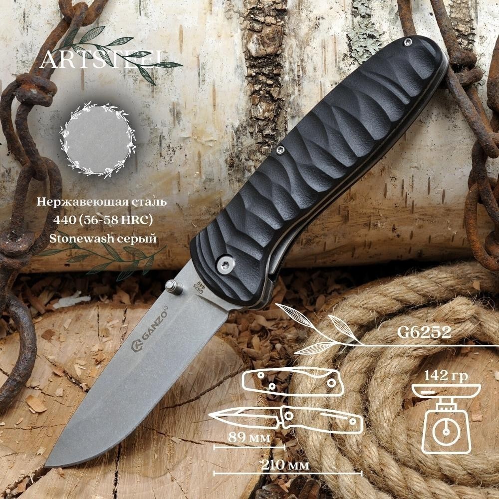 Складной нож Ganzo G6252, сталь 440C, рукоять пластик, резина G6252-BK