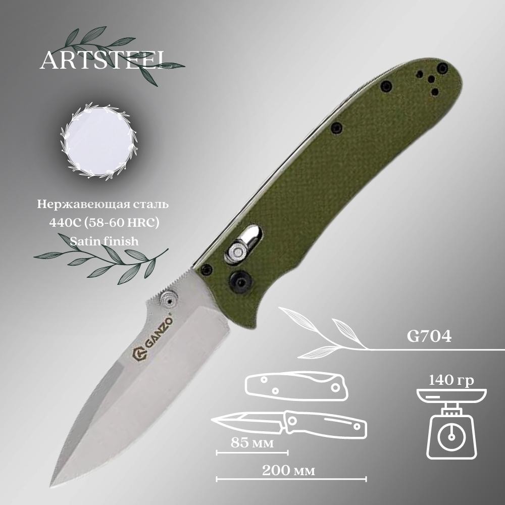 Складной нож Ganzo G704-GR, сталь 440C, рукоять G10 G704-GR