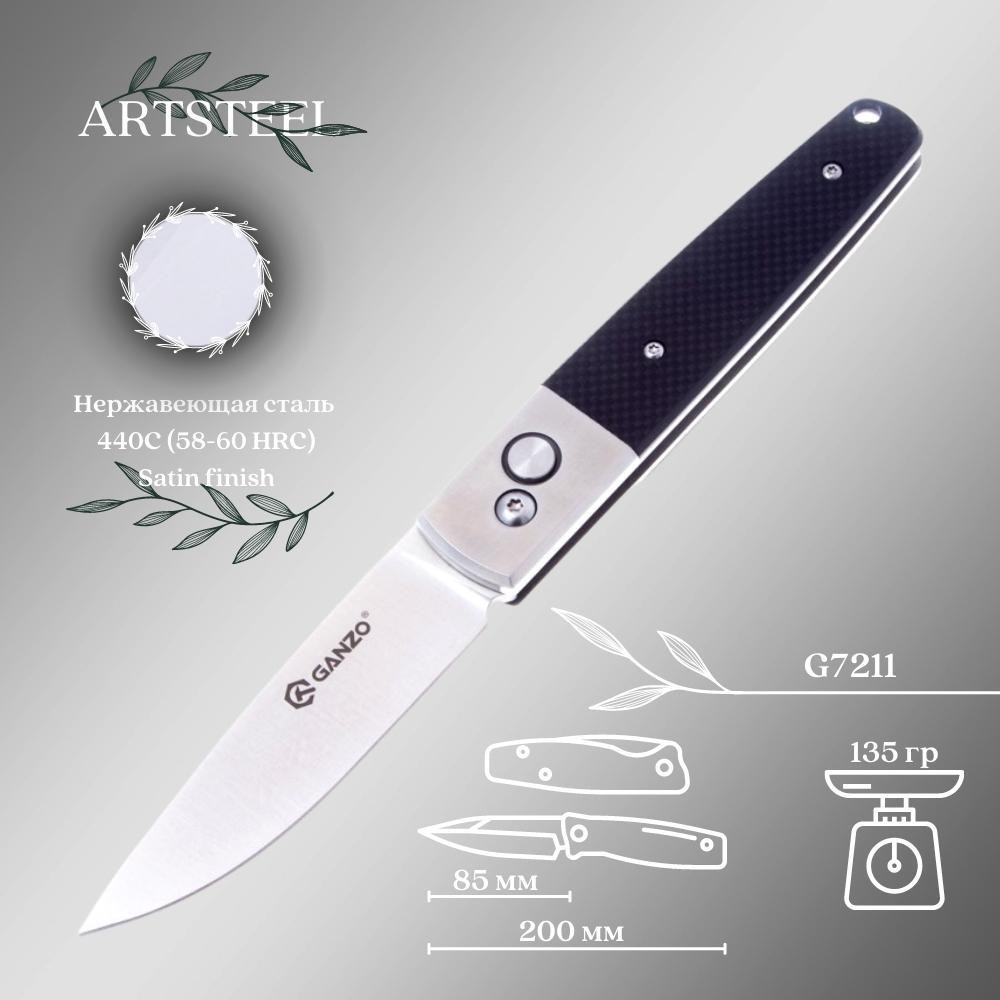 Складной нож Ganzo G7211-BK, сталь 440C, рукоять G-10, нержавеющая сталь