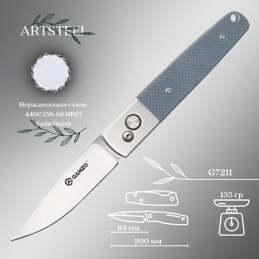 Складной нож Ganzo G7211-GY, сталь 440C, рукоять G-10, нержавеющая сталь