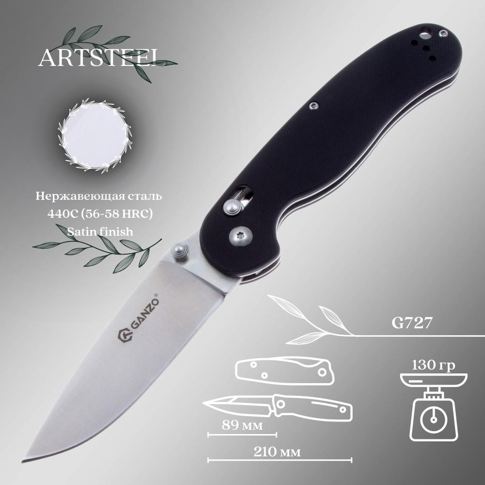 Складной нож Ganzo G727M-BK, сталь 440, рукоять G10 G727M-BK
