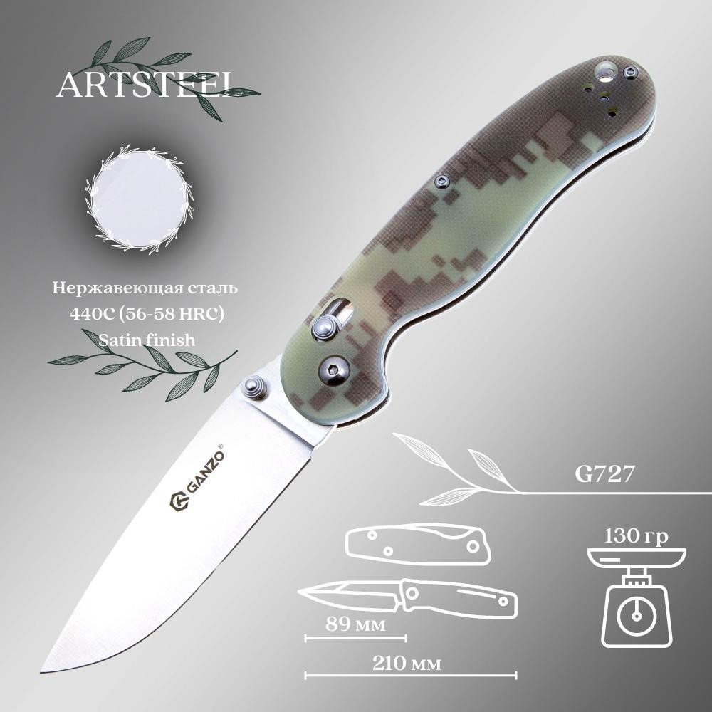 Складной нож Ganzo G727M-CA, сталь 440, рукоять G10 G727M-CA