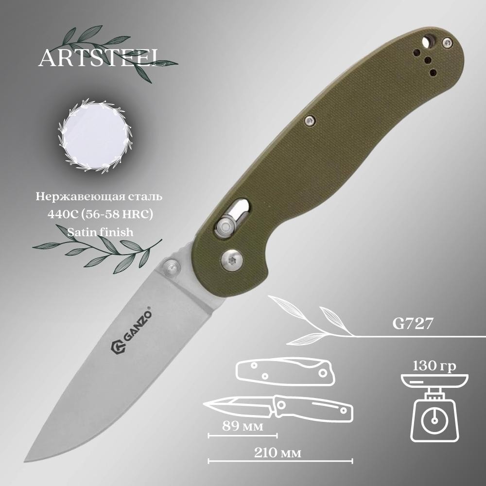 Складной нож Ganzo G727M-GR, сталь 440, рукоять G10 G727M-GR