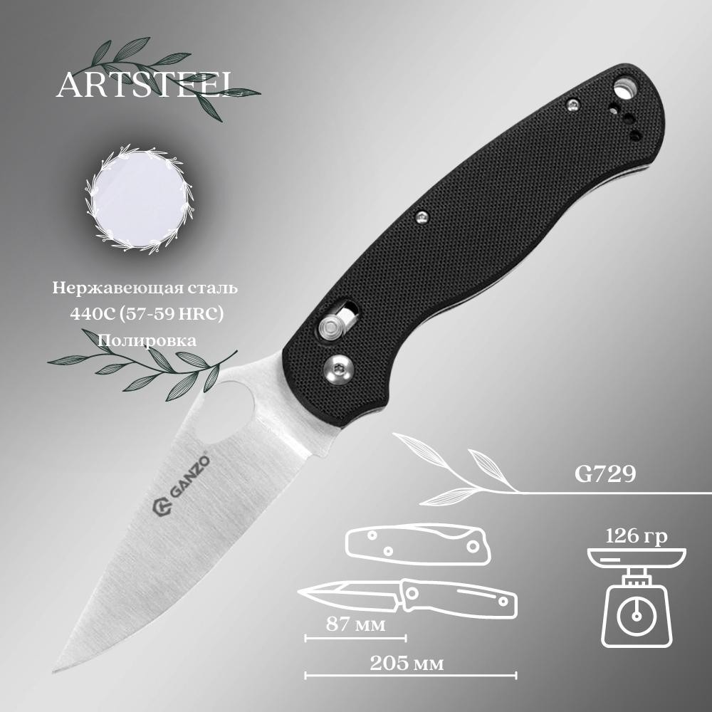 Складной нож Ganzo G729-BK, сталь 440C, рукоять G10 G729-BK