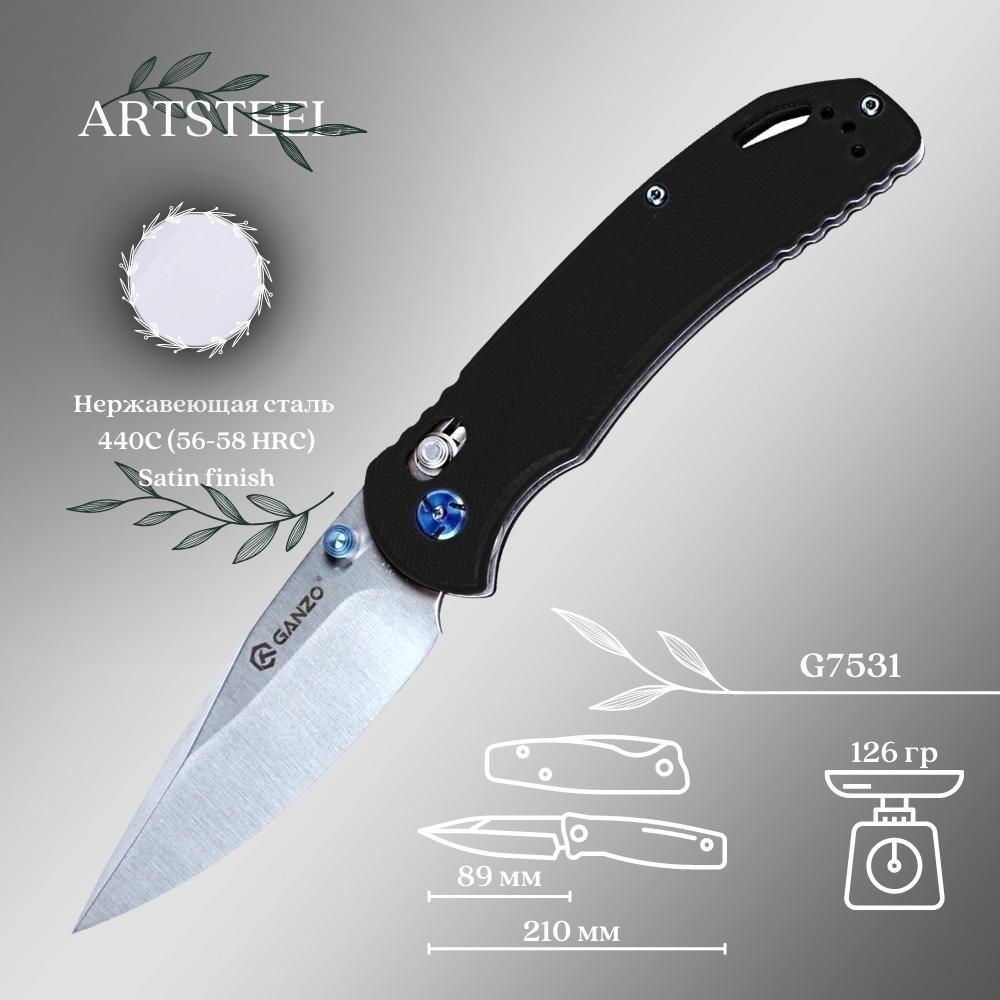 Складной нож Ganzo G7531-BK, сталь 440C, рукоять G10 G7531-BK