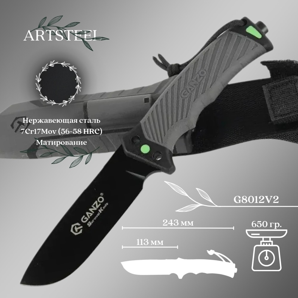 Нож Ganzo G8012V2-GY относится к нескладному типу ножей, главное предназначение которого — облегчение выживания пользователя в экстремальных условиях вдали от цивилизации. Модель выдерживает интенсивные нагрузки на клинок, имеет продолжительный срок службы, а фирменные ножны из комплекта дополнены рядом функций, которые пригодятся во время отдыха на природе.