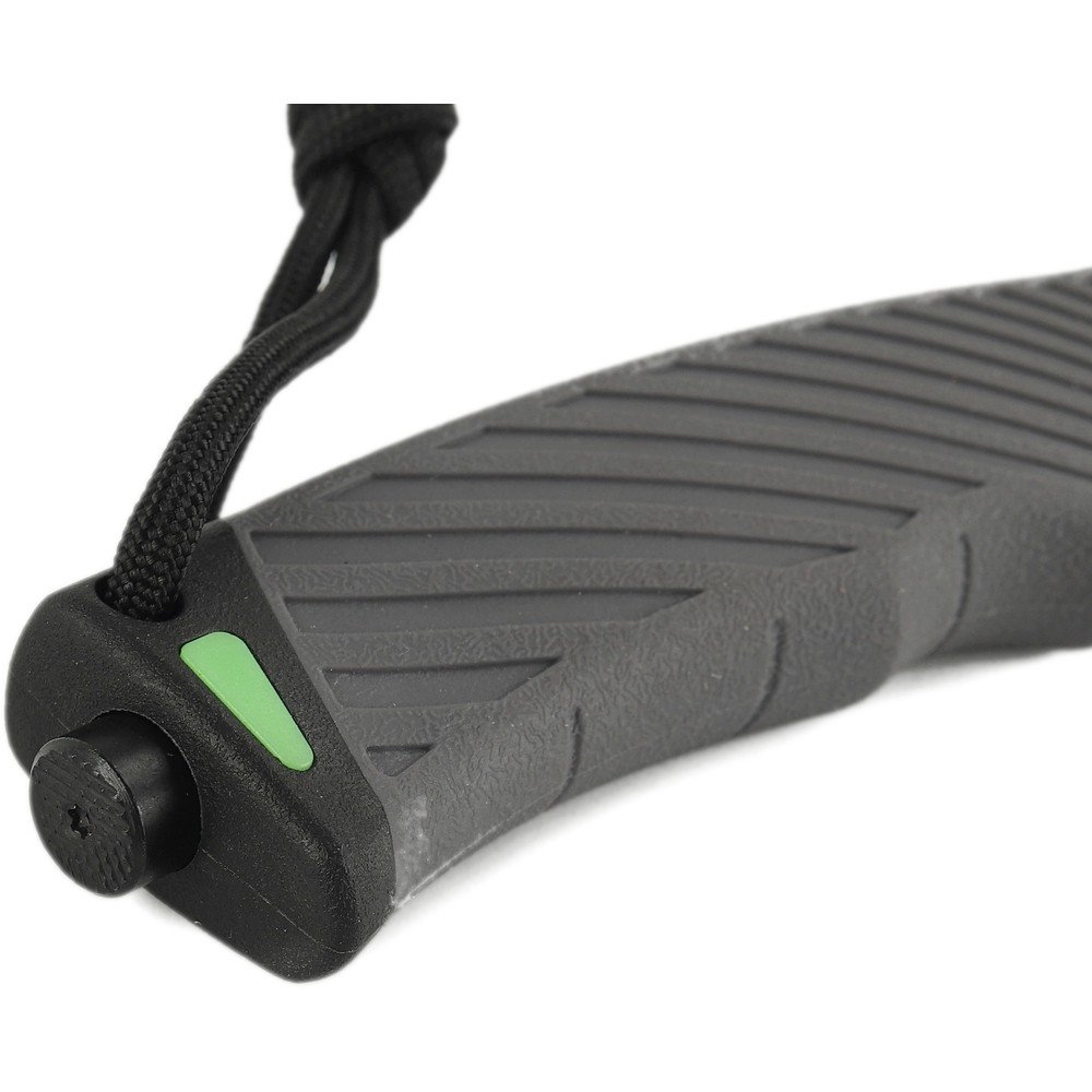 Эргономичная рукоять — еще одно достоинство модели. Она изготовлена из ABS-пластика, который высоко ценится в производстве формованных изделий за повышенную ударопрочность, легкость и стойкость к химическим соединениям, включая бензин, углеводород и ряд кислот. Чтобы нож не выскальзывал из влажных рук, рукоять ножа имеет удобные выемки под пальцы, которые гарантируют надежный хват. Данная модель идет вместе с темляком из паракорда — прочной веревки, которая имеет долгий срок службы и обеспечивает дополнительную фиксацию изделия на ремне или сумке.