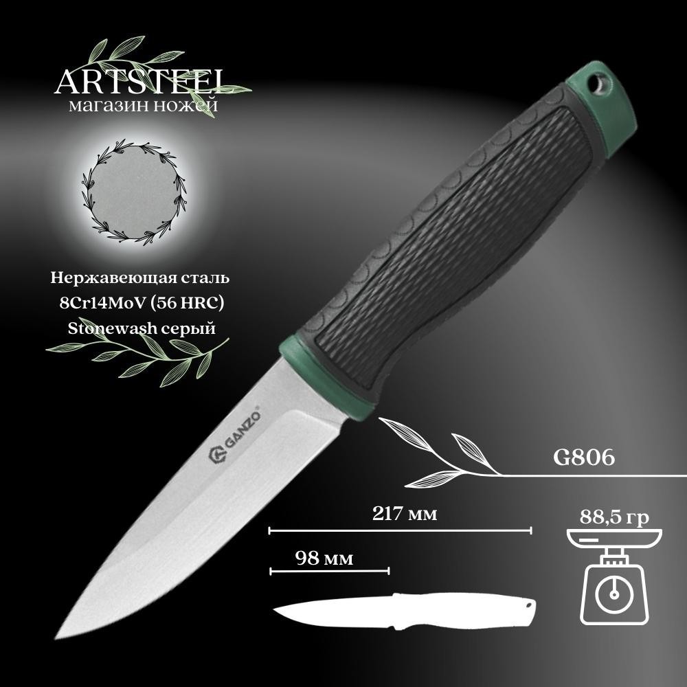 Нож Ganzo G806-GB, сталь 8Cr14MoV, рукоять полипропилен, резина G806-GB