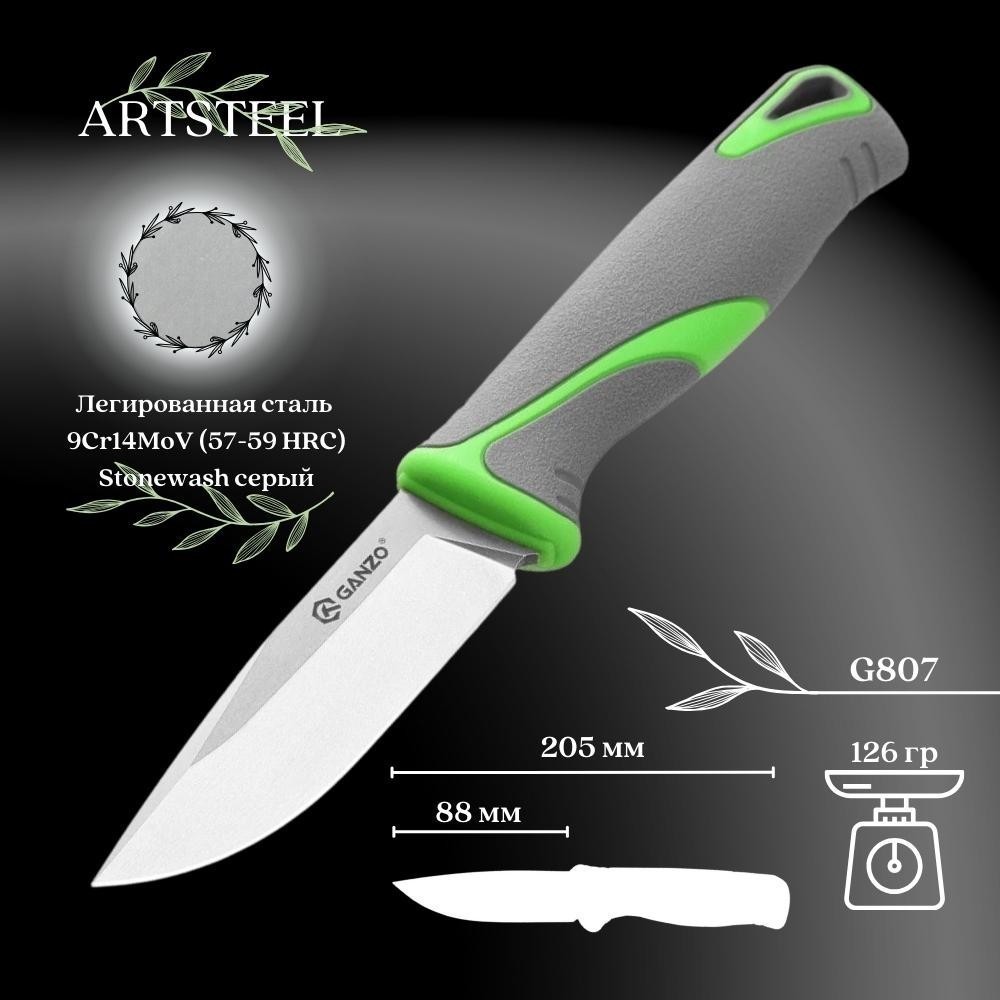 Нож Ganzo G807-GY, сталь 9CR14, рукоять полипропилен, резина G807-GY