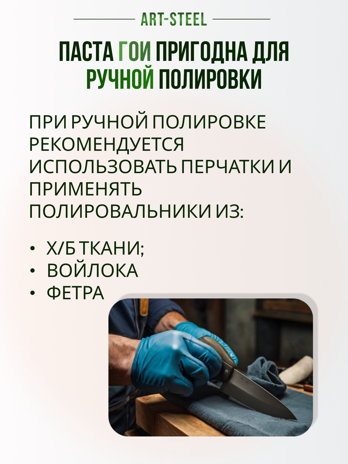 Предназначена для полировки стальных сплавов, в т.ч. термически упроченных, цветных металлов, твердых пластиков, стекла, в т.ч. оптического