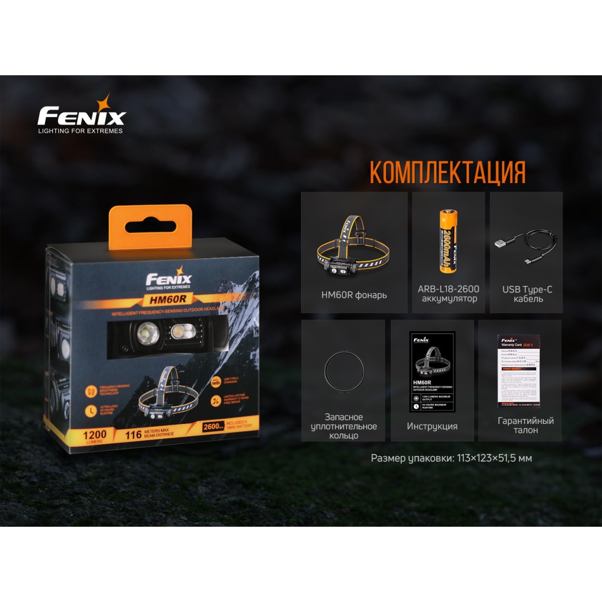Фонарь налобный Fenix HM60R, дальность 116 м HM60R
