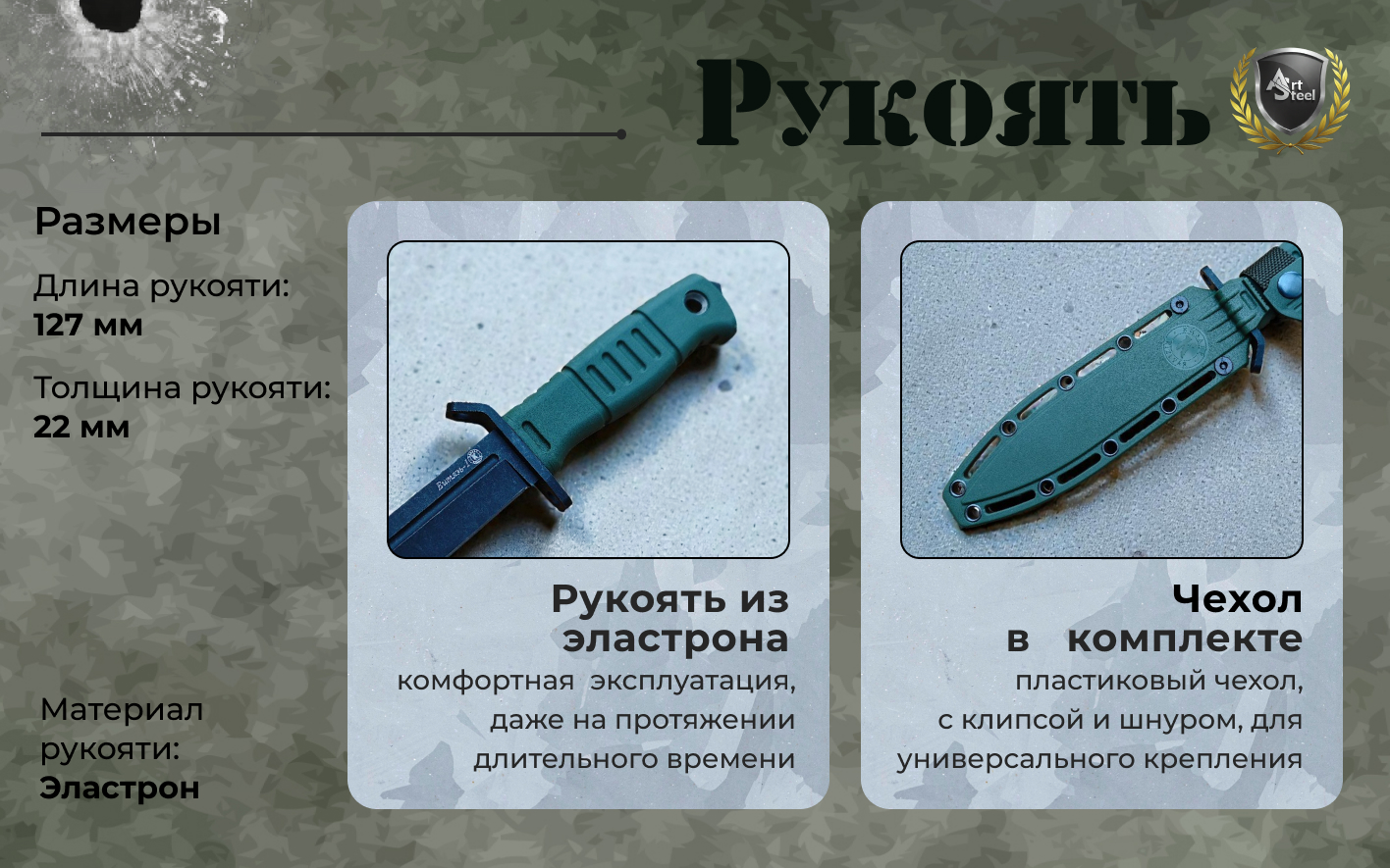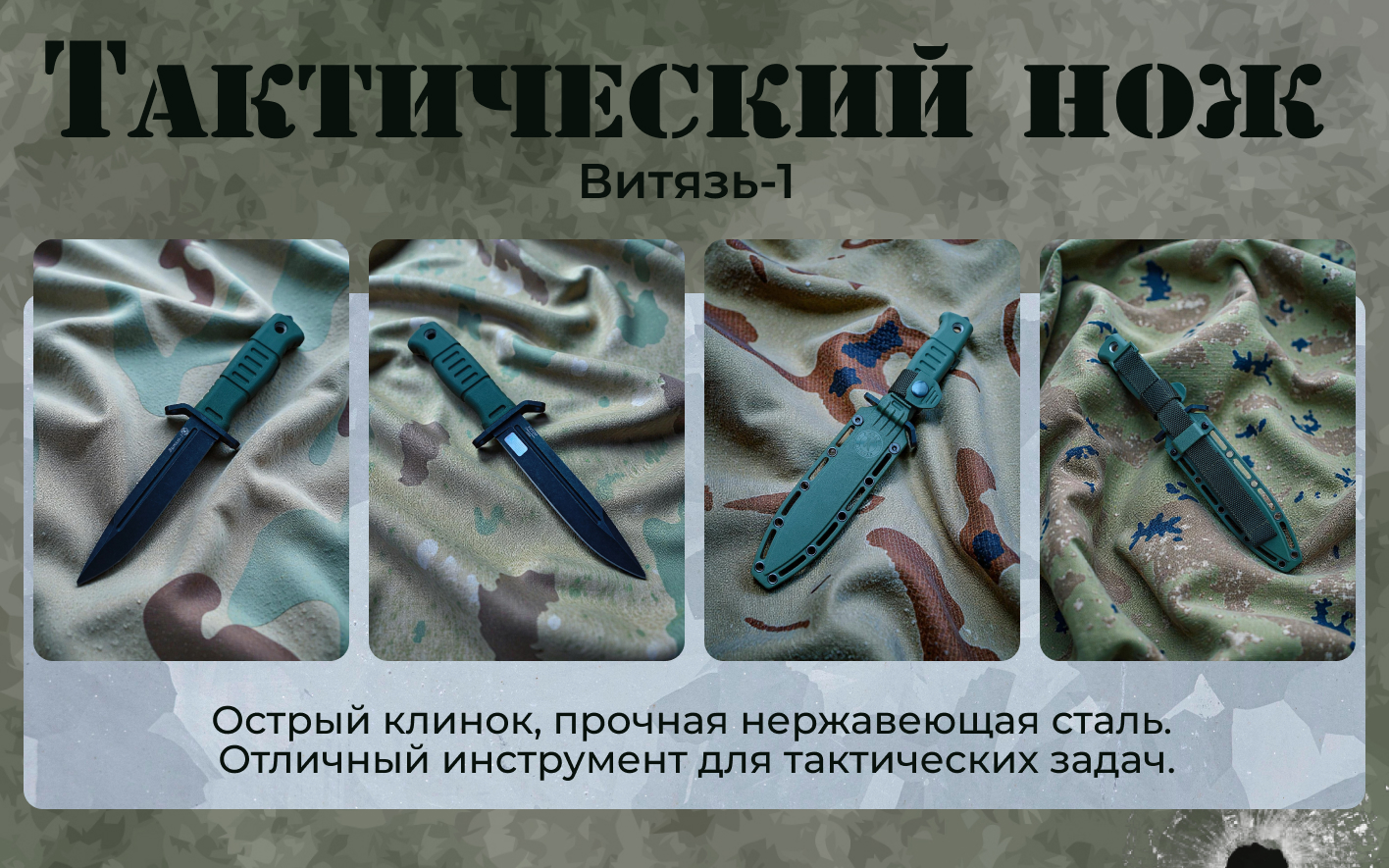 Туристический нож от бренда ООО ПП Кизляр с названием «Витязь-1» для тех, кто ценит практичность и долговечность. Клинок выполнен из проверенной стали AUS-8, сочетающей хорошую коррозионную стойкость и лёгкость восстановления режущей кромки в походных условиях. Устойчивая конструкция с фиксированным клинком. Вогнутые спуски оптимизированы для точного реза при разделке, подготовке пищи и резке веток. Обработка клинка стоунвош – чёрная, сглаживает мелкие царапины и придаёт приятную матовую текстуру. Рукоять эластрон - это резинопластик, отличается высокой практичностью и износостойкостью, пористая фактура обеспечивает хорошую и уверенную цепкость с рукоятью даже в случае попадания жира на руки.