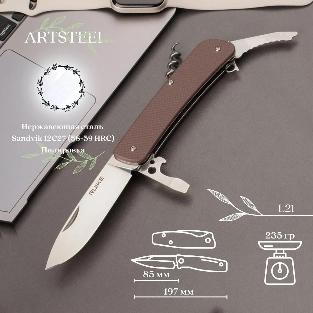 Многофункциональный нож Ruike, сталь Sandvik 12C27, рукоять G10 L21-N
