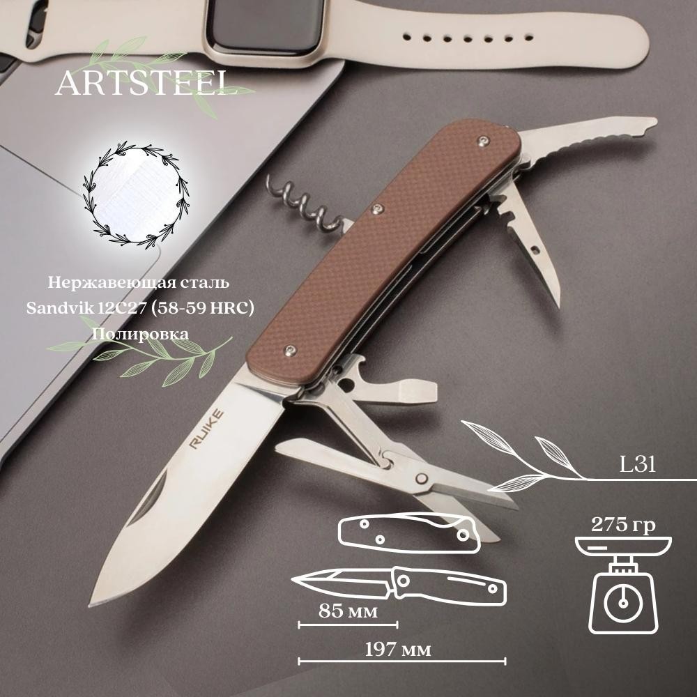Многофункциональный нож Ruike, сталь Sandvik 12C27, рукоять G10 L31-N