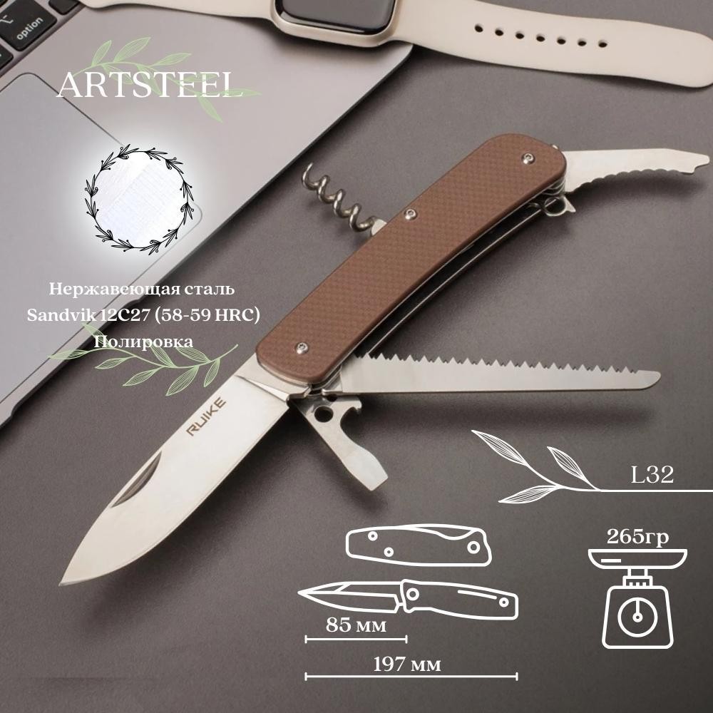 Многофункциональный нож Ruike, сталь Sandvik 12C27, рукоять G10 L32-N