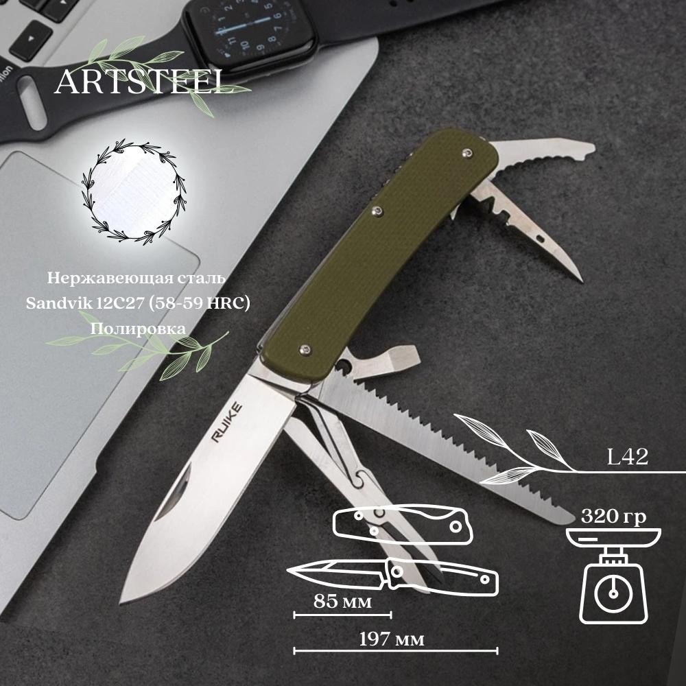 Многофункциональный нож Ruike, сталь Sandvik 12C27, рукоять G10 L42-G