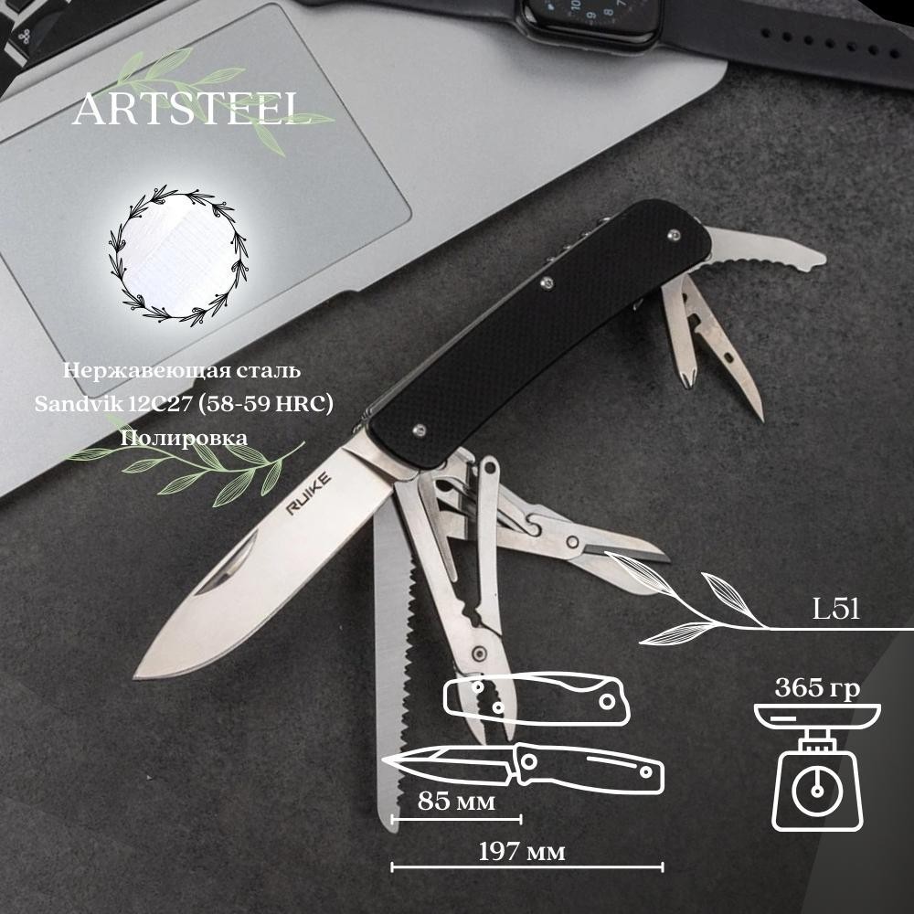 Многофункциональный нож Ruike, сталь Sandvik 12C27, рукоять G10 L51-B