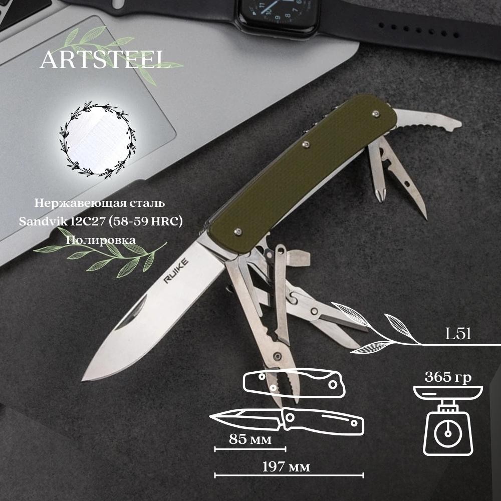 Многофункциональный нож Ruike, сталь Sandvik 12C27, рукоять G10