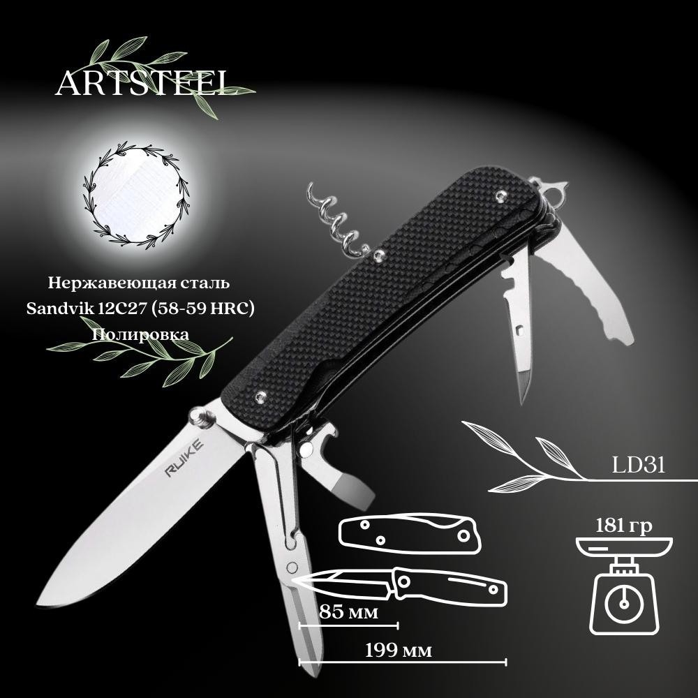 Многофункциональный нож Ruike, сталь Sandvik 12C27, рукоять G10 LD31-B