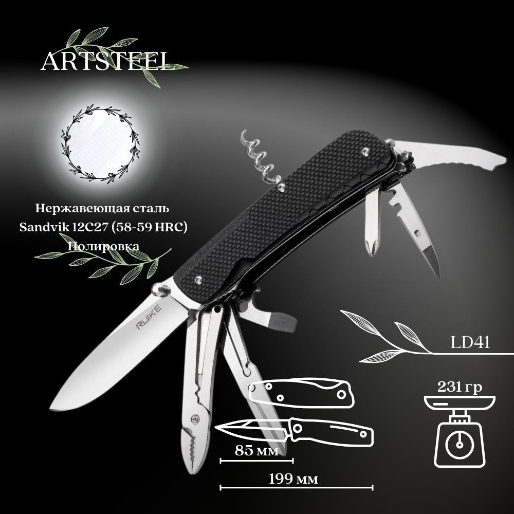Многофункциональный нож Ruike, сталь Sandvik 12C27, рукоять G10 LD41-B
