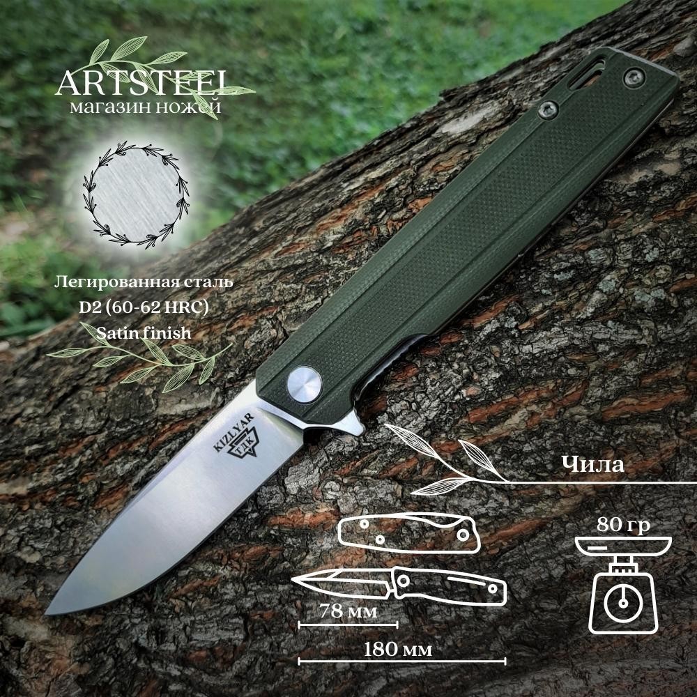 Складной нож Чила, сталь D2, рукоять G10 LLKB365 green