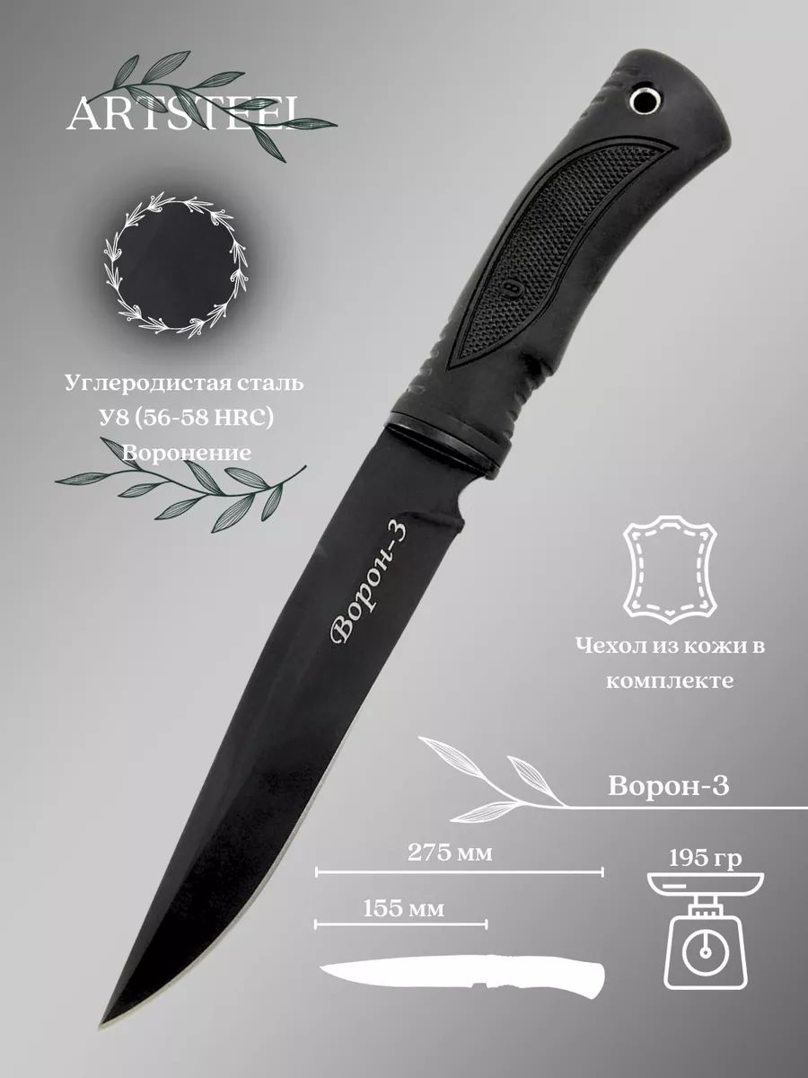 Нож Ворон 3, сталь У8, рукоять эластрон LR1159-Y