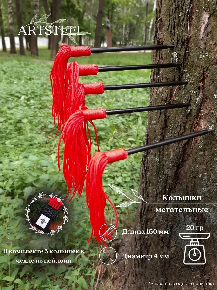 Набор состоит из пяти колышек, что делает его удобным для тренировок и соревнований. Сталь марки 420, используемая для изготовления кколышек, является нержавеющей сталью, что позволяет использовать их в условиях высокой влажности без риска появления ржавчины. Изделия из данной стали отличаются относительно низкой ценой, что делает их привлекательным выбором для тех, кто ищет сочетание прочности и нержавеющих свойств по доступной цене. Все колышки имеют одинаковый размер и вес, что обеспечивает равные усилия для всех попыток броска. Метательные колышки - это легкие и компактные ножи, которые прекрасно подходит для бросков на дальние расстояния. Они имеют простую форму и позволяют быстро и точно навестись на цель.