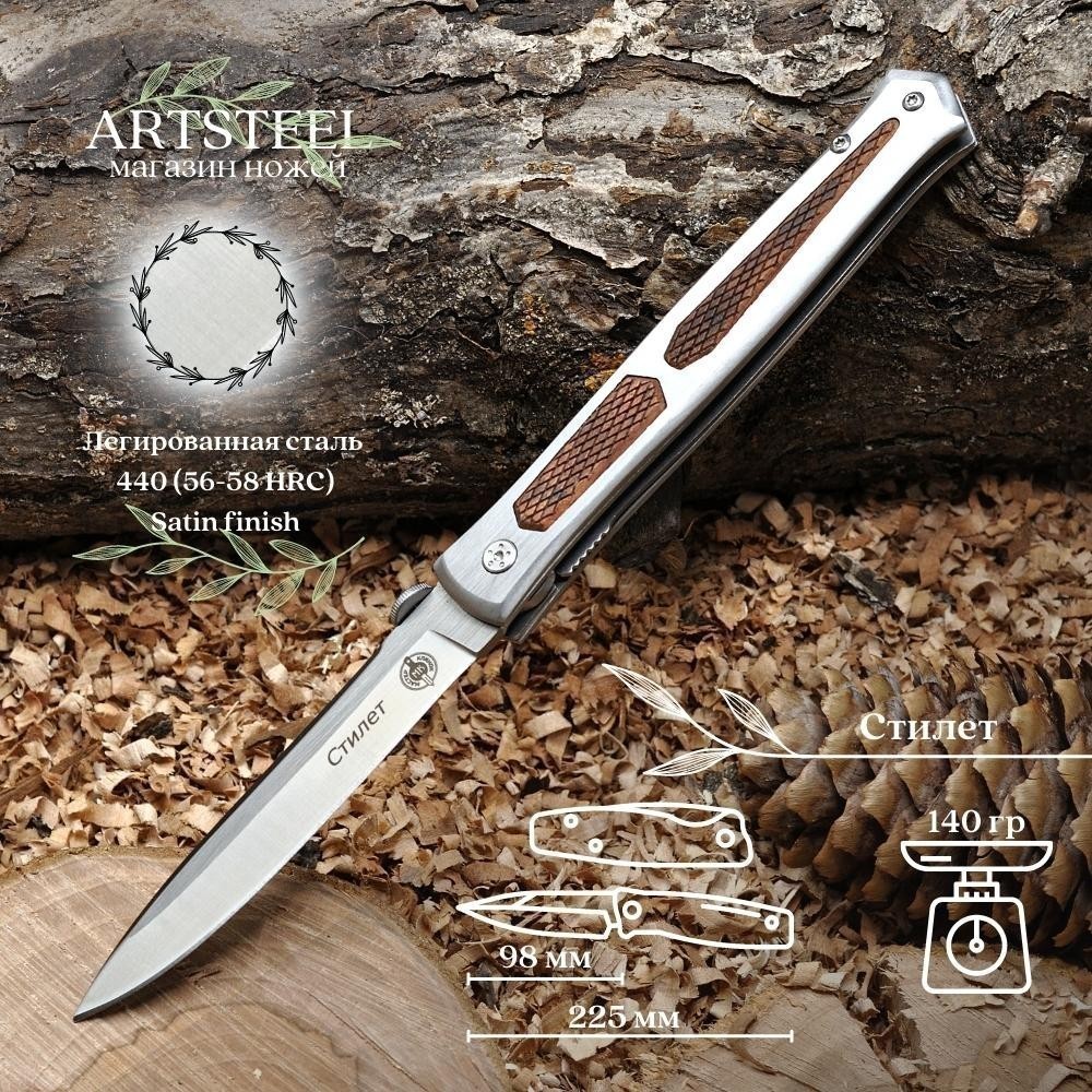 Складной нож Стилет, сталь 440, рукоять сталь, дерево M9697
