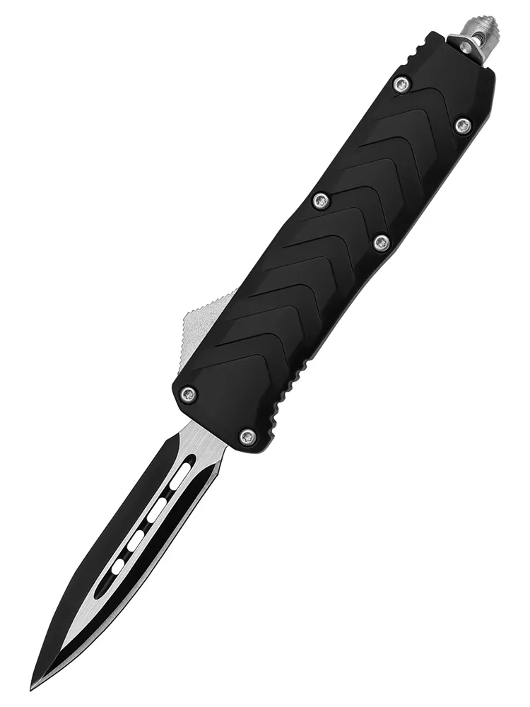 Клинок выполнен из нержавеющей стали 5Cr15MoV, известной своей устойчивостью к коррозии и хорошим балансом твёрдости и упругости. Такая сталь легко точится, долго сохраняет остроту и обеспечивает чистый, контролируемый рез при любой нагрузке. Автоматический механизм позволяет мгновенно раскрыть нож одним нажатием, что особенно удобно в полевых условиях.
