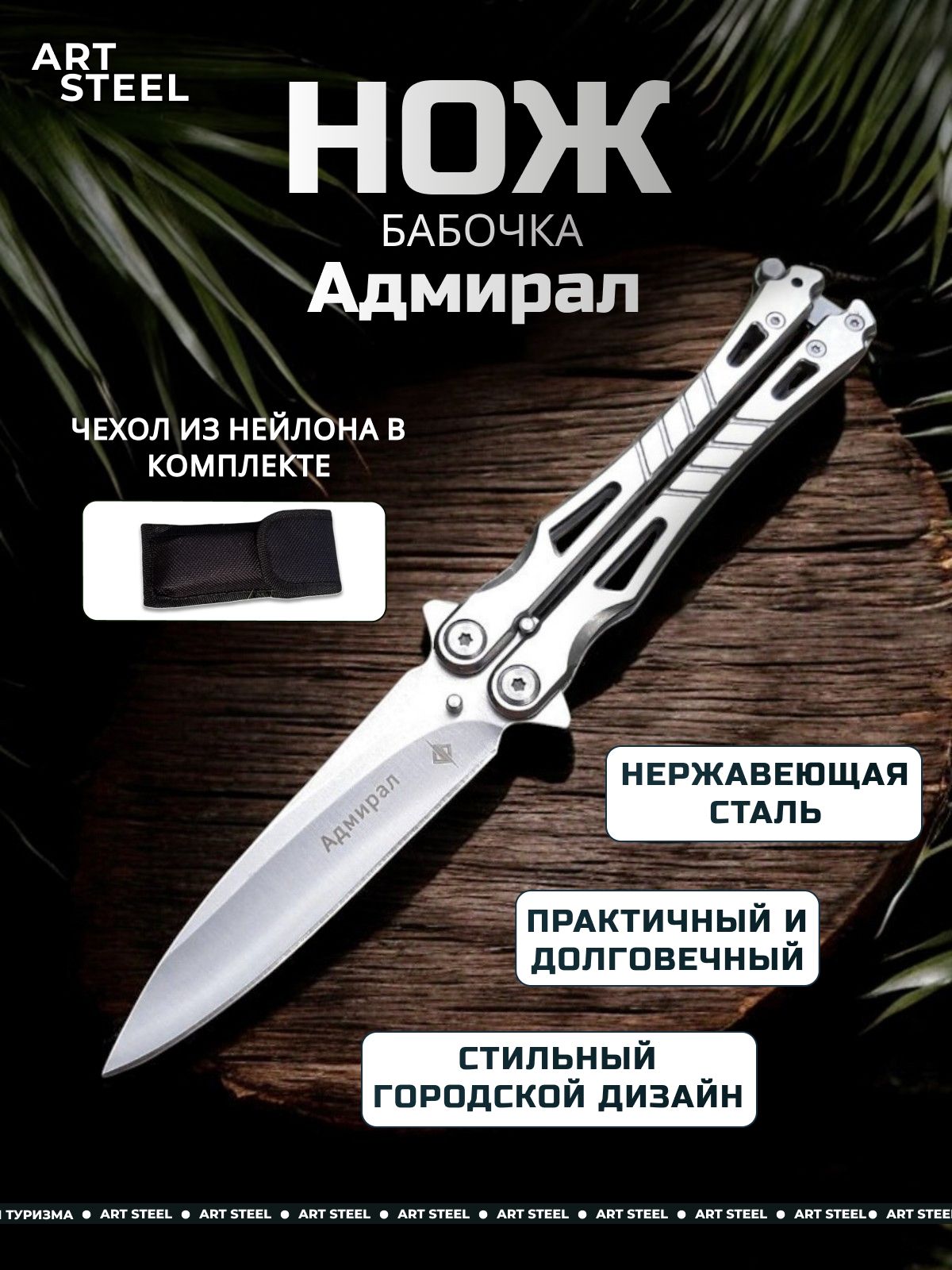 Нож бабочка Адмирал, сталь 420, рукоять сталь