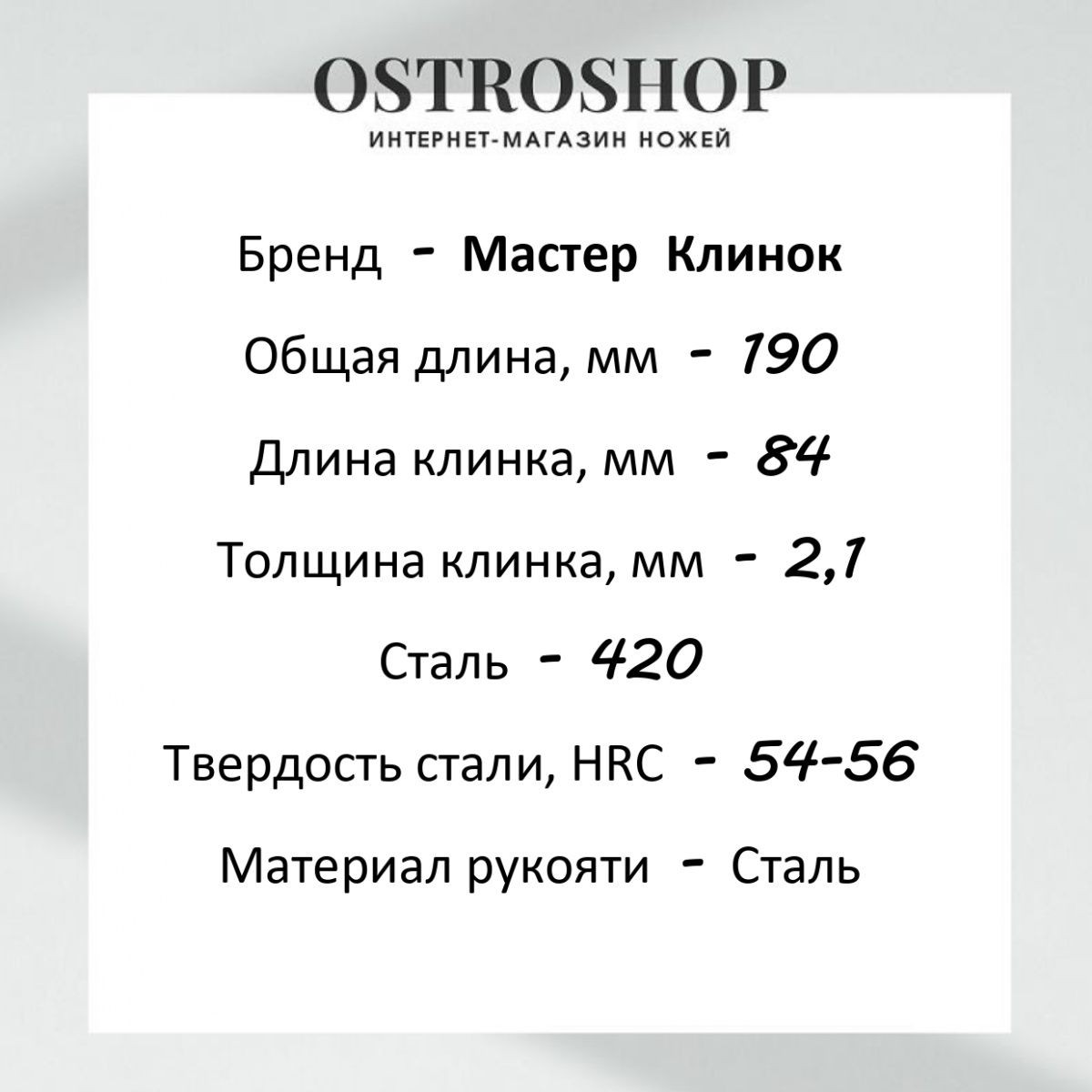 Длина клинка (см) 8.4 см
