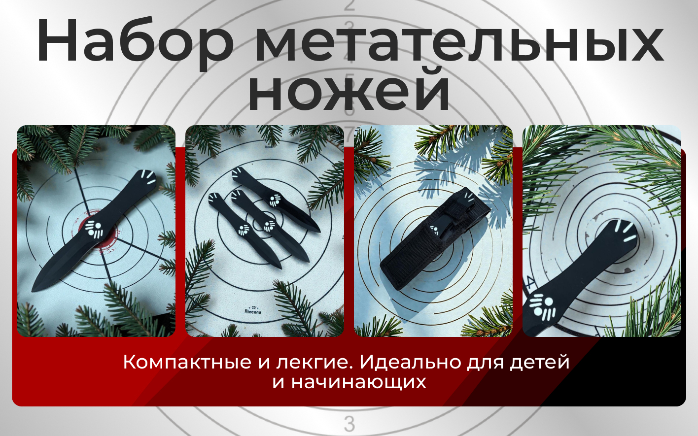 Туристический комплект включает в себя 3 ножа, которые могут использоваться во время путешествий на природу. Они легкие, компактные и не занимают много места в рюкзаке. Метательные ножи идут в комплекте с нейлоновым чехлом, обеспечивающим безопасность и удобство хранения и транспортировки ножей.