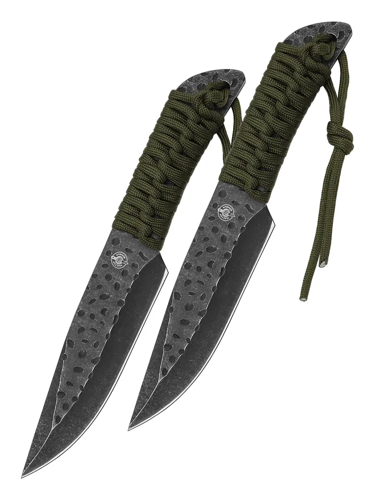 Рукояти обмотаны паракордом — лёгким и прочным синтетическим шнуром, который обеспечивает надёжный нескользящий хват и может быть использован отдельно в походных условиях. Такое решение делает ножи ещё более универсальными и функциональными.