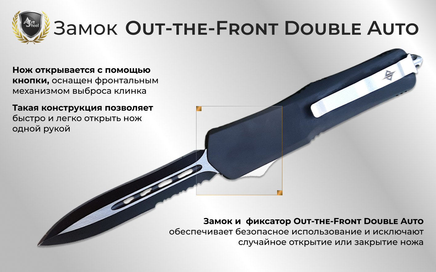 Автоматический складной нож Тирекс (фронтальный) с серрейтором, сталь 40х13, рукоять алюминий OS01BDS