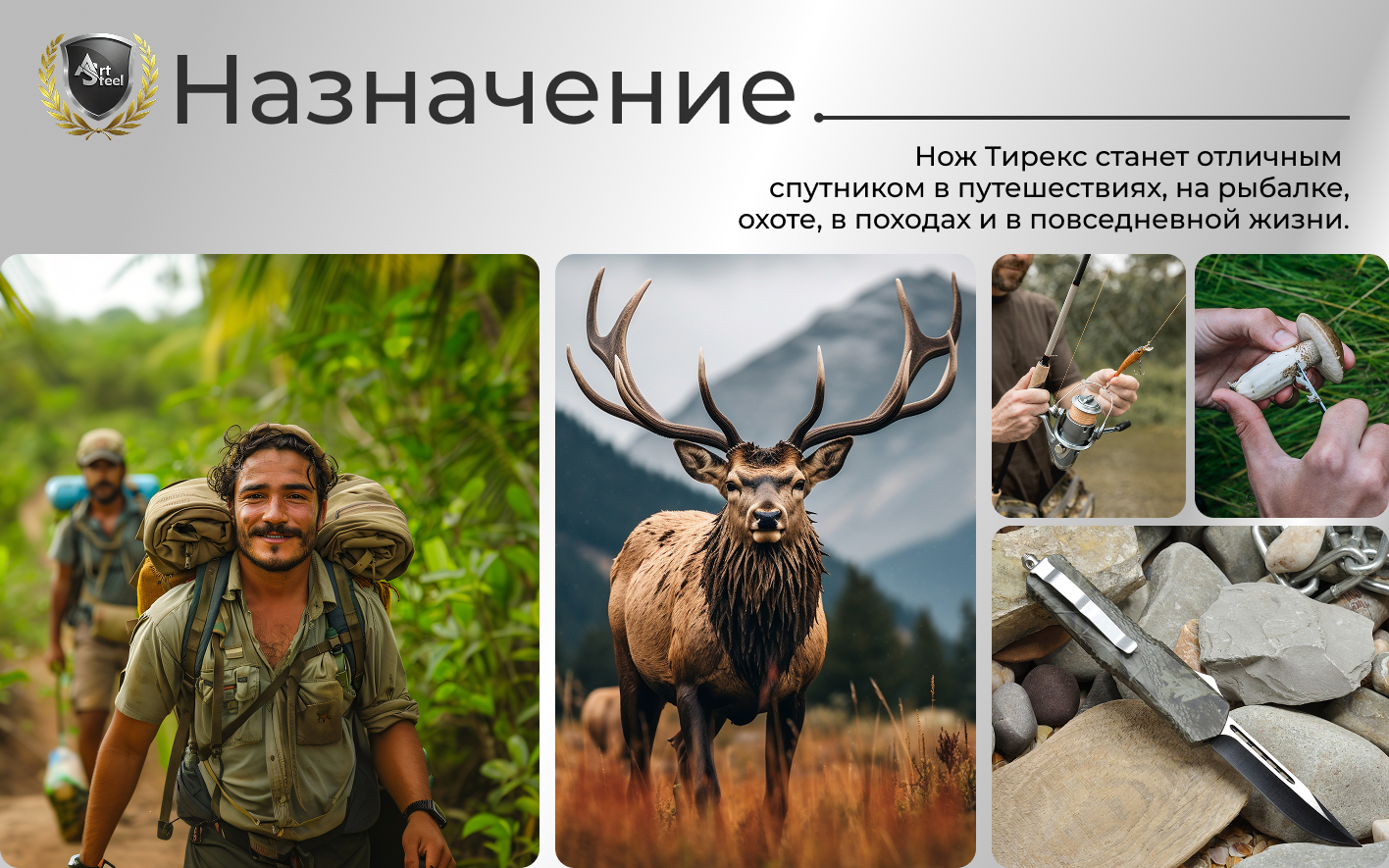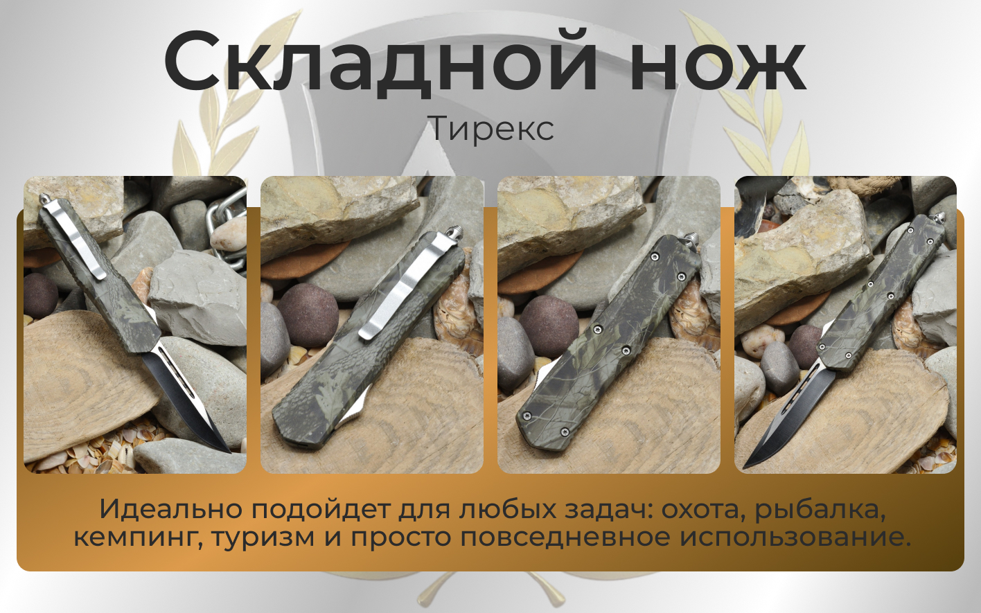 Если вы ищете оригинальный и полезный подарок для мужчины, автоматический складной нож Тирекс станет отличным выбором. Это не просто инструмент, а универсальный помощник во многих сферах жизни: от приготовления пищи на природе до туристических задач, рыбалки и охоты. Современный выкидной фронтальный нож сочетает в себе надежность, функциональность и удобство, оставаясь стильным аксессуаром на каждый день.