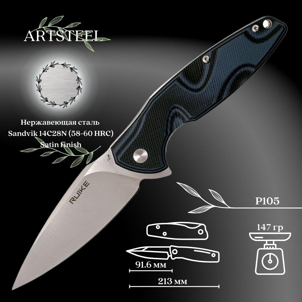 Складной нож Ruike, сталь Sandvik 14C28N, рукоять G10 P105-K