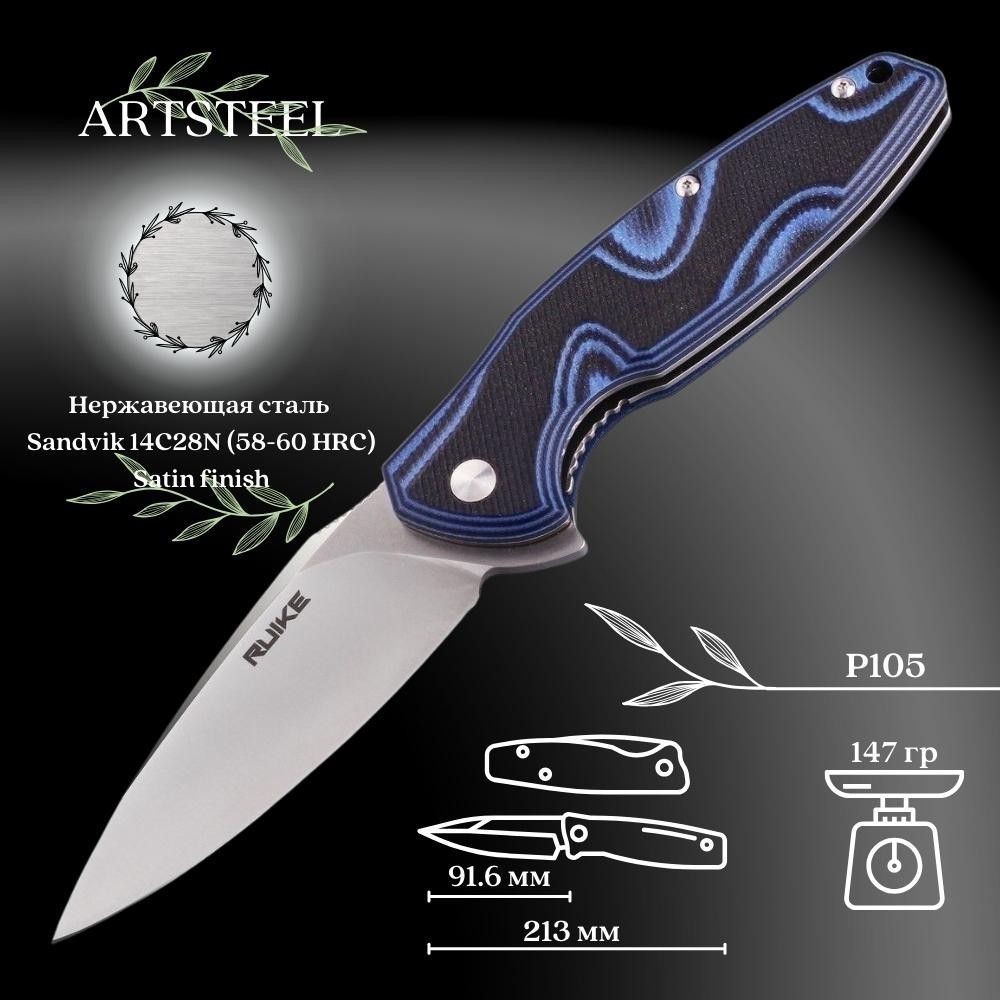 Складной нож Ruike, сталь Sandvik 14C28N, рукоять G10 P105-Q