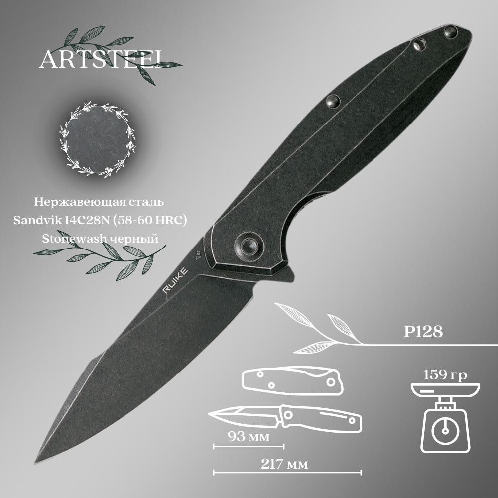 Складной нож Ruike, сталь 14C28N, рукоять сталь P128-SB