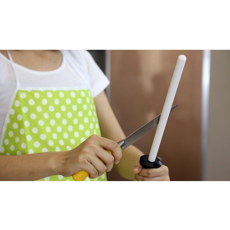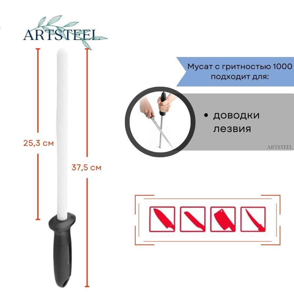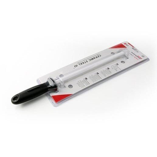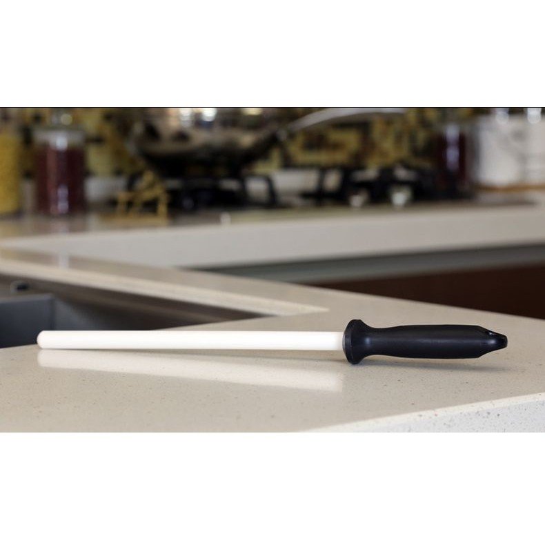 Мусат - это инструмент для поддержания остроты ножа между более серьезными заточками. Их часто используют повара, охотники и рыбаки для поддержания остроты своих ножей во время работы. Керамический стержень позволяет обрабатывать ножи из стали любой твердости. Зернистость 1000 отлично подходит доводки.