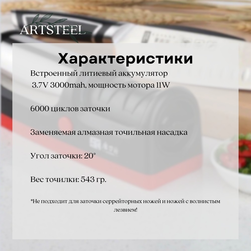 Бытовая аккумуляторная алмазная электроточилка TG1904 разработана для заточки как керамических, так и стальных ножей. Она оснащена встроенным аккумулятором, что позволяет использовать её вдали от источников электроэнергии. Корпус устройства изготовлен из прочного пластика, обеспечивая долгий срок службы. Заточка производится с постоянным углом 17,5° на каждую сторону лезвия, что оптимально для бытового применения и не требует дополнительной регулировки.