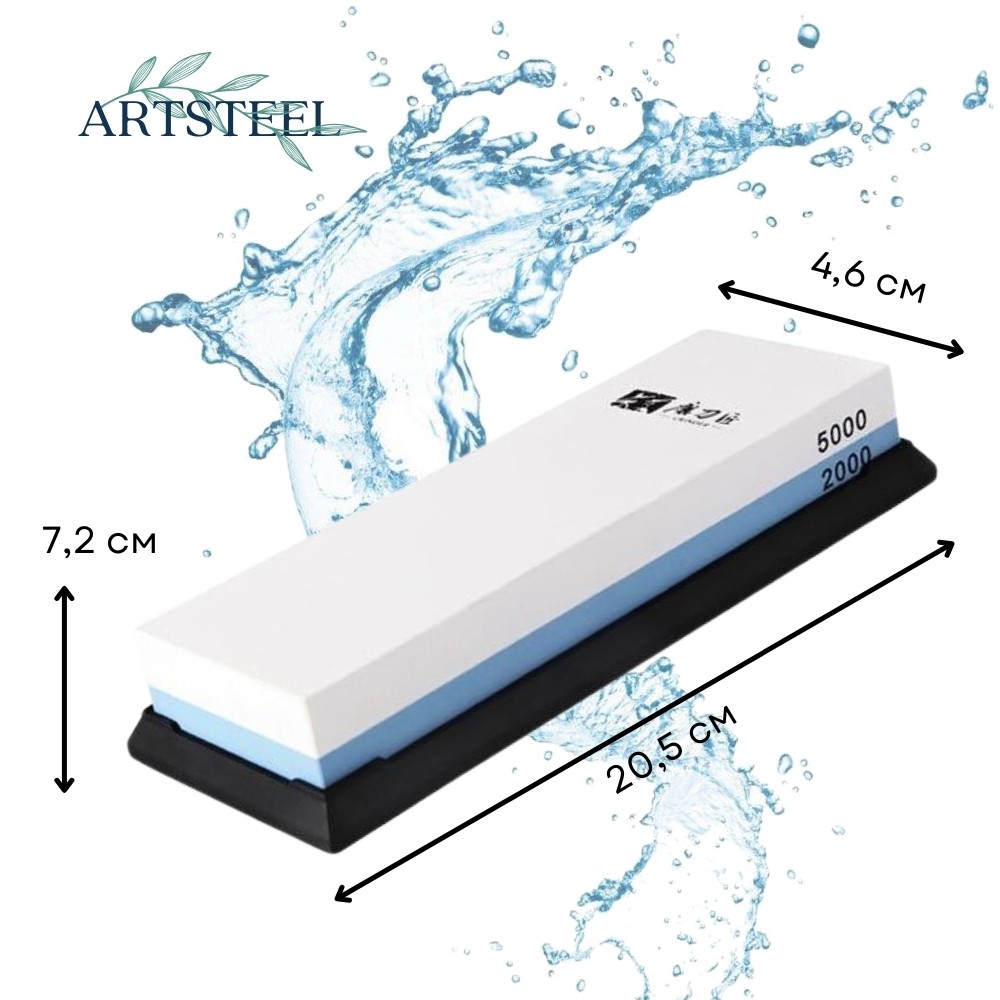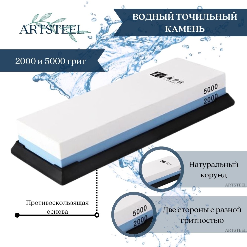 Данный камень имеет две стороны с зернистостью в 2000 и 5000 грит. Зернистость 2000 подходит для финишной заточки, полировки, доводки. Эта зернистость используется для создания более гладкой и остро заточенной кромки, которая подходит для точной резки. Высокие значения грита (от 4000 и выше) применяются для полировки и получения бритвенной остроты. Они создают безупречно острую кромку.