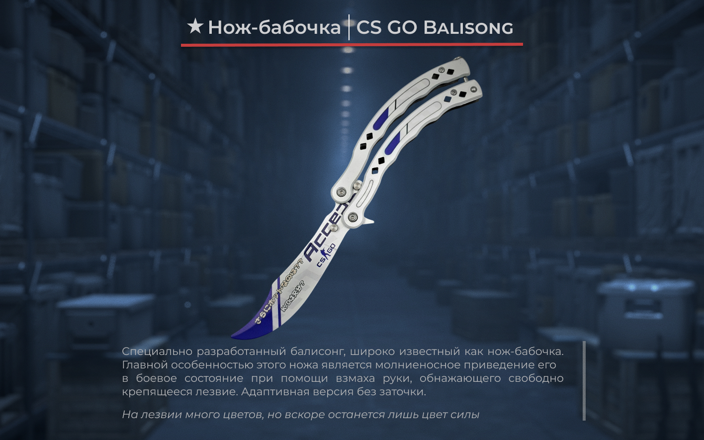 Один из самых популярных способов использования ножа-бабочки — флиппинг, набор трюков с раскладыванием и складыванием ножа. Этот тренировочный нож идеально подходит для безопасной отработки трюков, так как его клинок не имеет заточки и не может привести к травме. Такой нож-бабочка подойдет как взрослым, так и детям для тренировки движений разной сложности.Нож-бабочка CS GO Balisong станет отличным подарком для сына, друга, коллеги или любого поклонника флиппинга и коллекционного оружия.