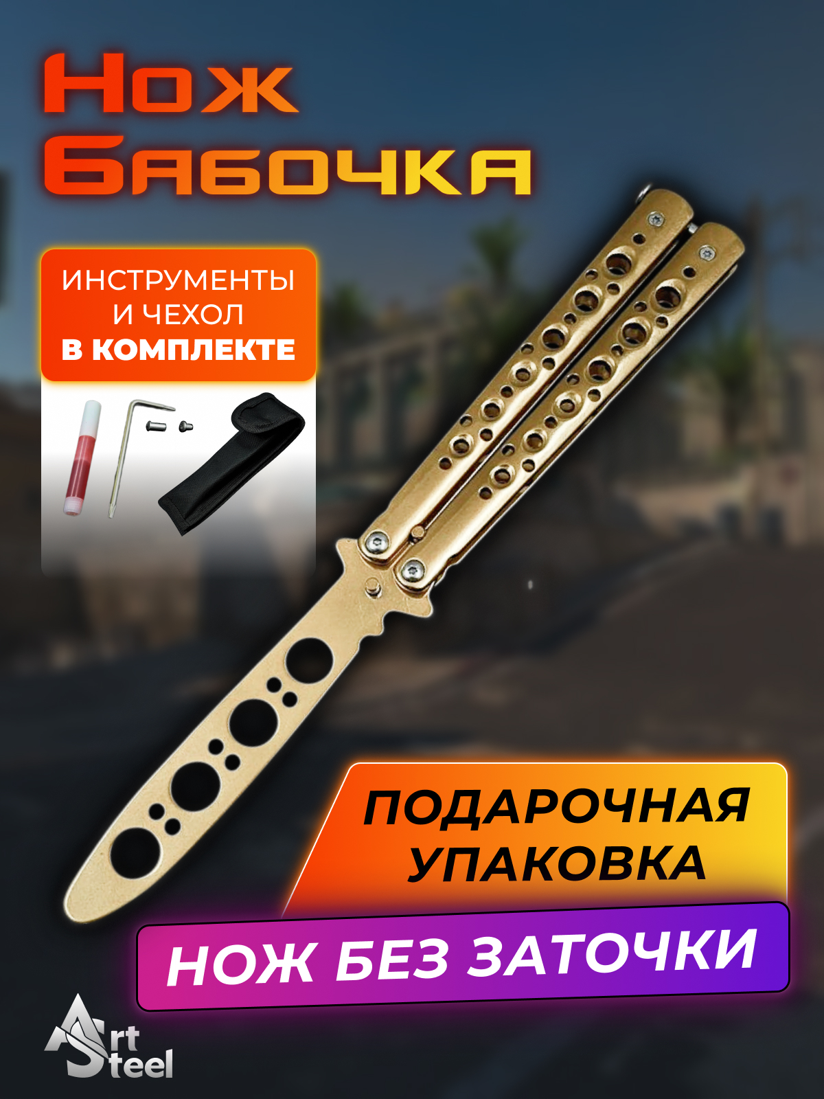 Нож бабочка тренировочный Золотой Рыцарь TR14-YW