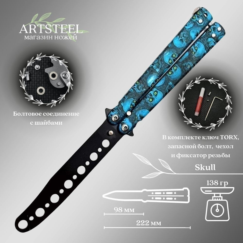 Нож бабочка тренировочный Blue Skull TR17-BL