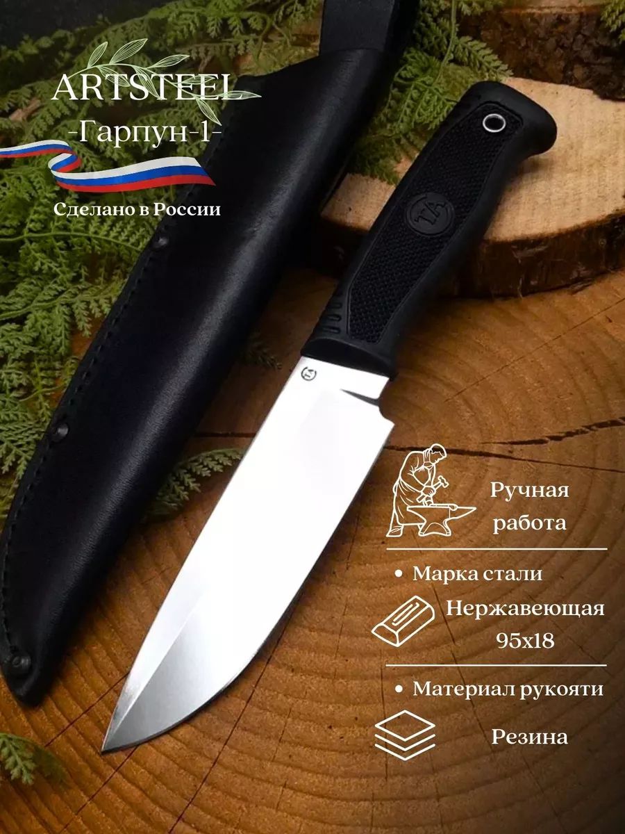 Нож Гарпун-1 из стали 95Х18, рукоять резина TS013-9R