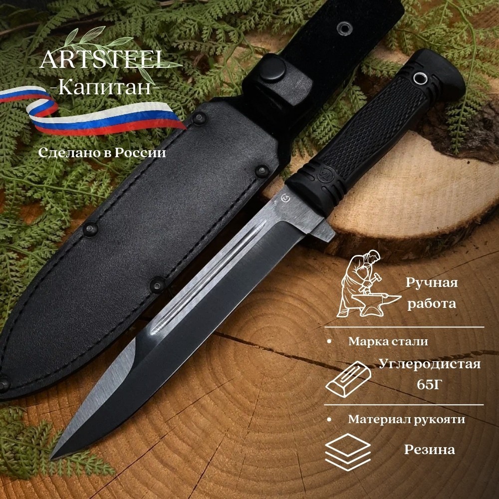 Нож Капитан из стали 65Г, рукоять резина TS031-65R