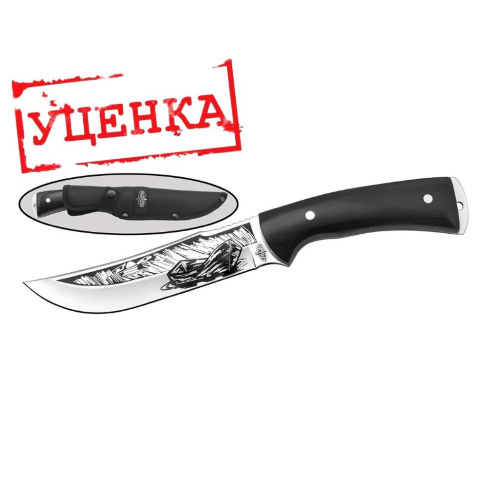 Универсальный походный нож, изготовленный по технологии "full-tang" из цельной стальной пластины. Клинок с характерной «щучкой» и сканди-спусками прекрасно выполняет любую работу на охоте, рыбалке, в походе. Высококачественная нержавеющая сталь хорошо держит заточку, эффективно сопротивляется агрессивному воздействию среды. На обухе ножа имеется специальная насечка, а на пяте сделано углубление, чойл, которые позволяют повысить маневренность клинка для выполнения тонких и деликатных действий. На одну из голоменей клинка нанесено художественное травление. Ухватистая и прочная рукоять, с развитым подпальцевым упором, выполнена из древесного ламината и обработана специальной пропиткой для защиты от влаги. В тыльнике рукояти, который может использоваться как стеклобой, сделано темлячное отверстие. Нож комплектуется удобными нейлоновыми ножнами.