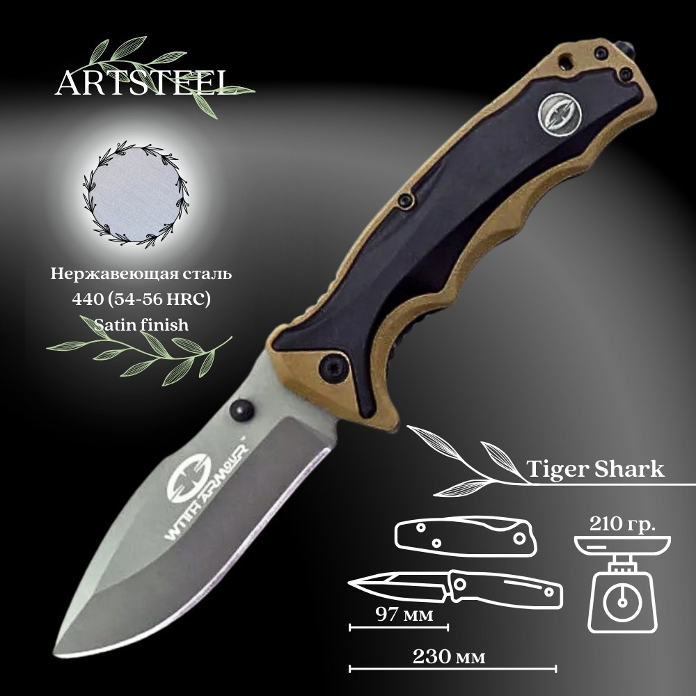 Складной нож Tiger Shark, сталь 440, рукоять пластик, резина WA-019TN