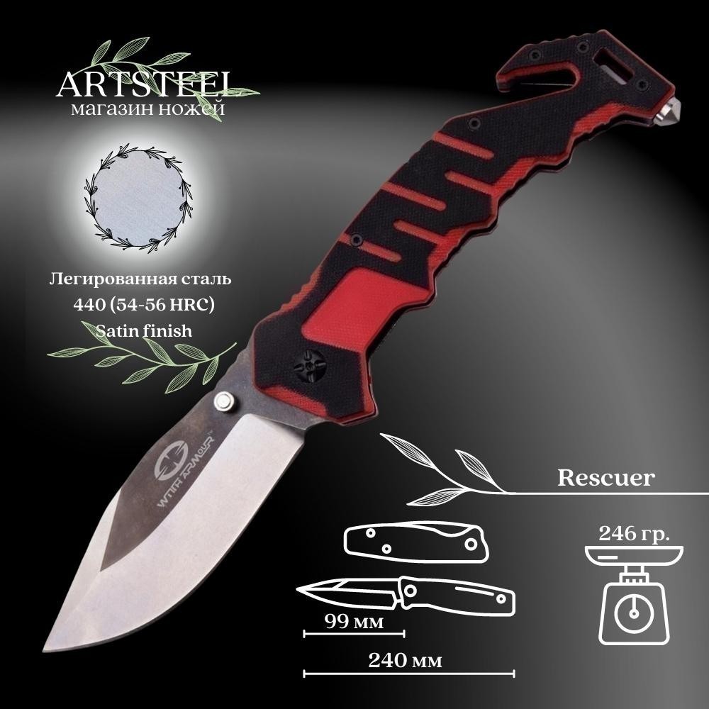Складной нож Rescuer, сталь 440, рукоять G10 WA-045BR